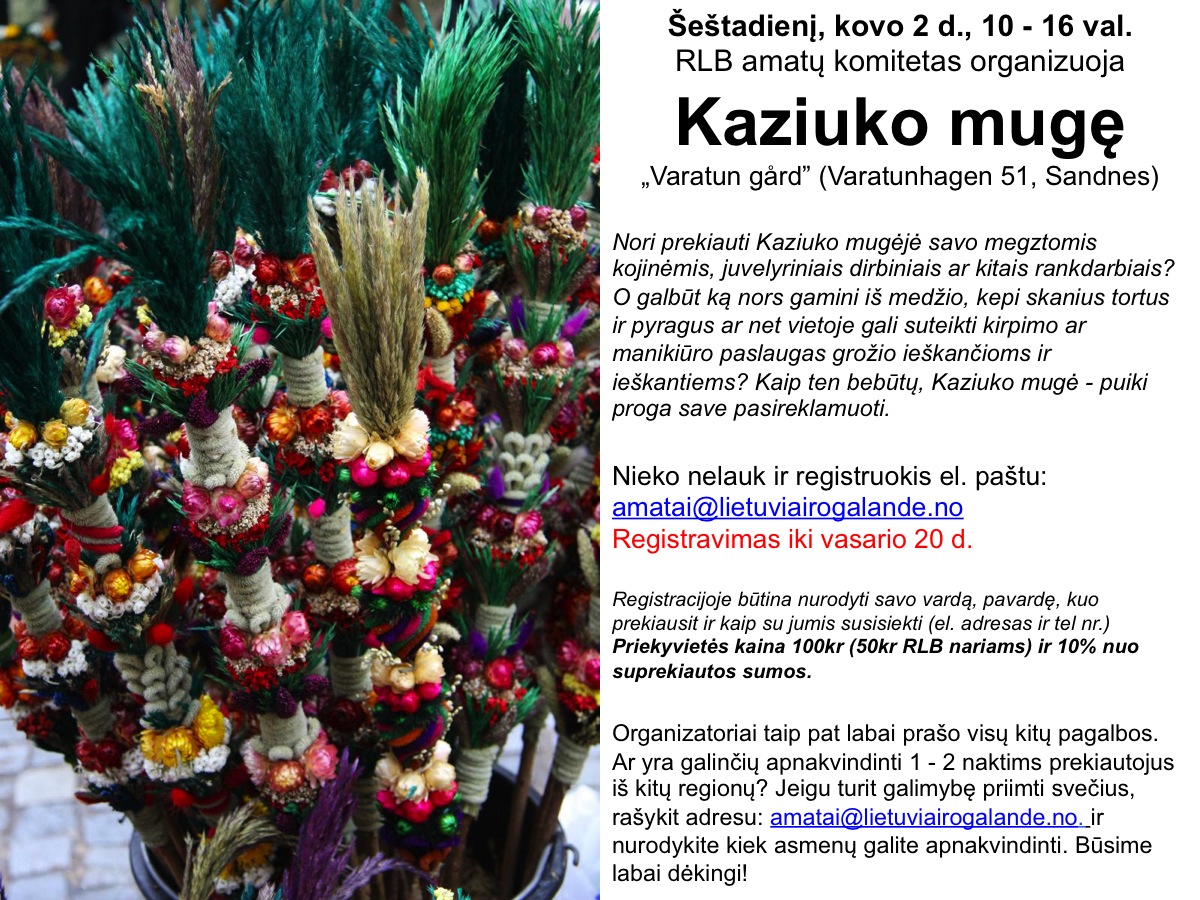 27 vasario, 2013 | Rogalando Lietuvių Bendrija Kovo 2d. Kaziuko mugė Dalintis: Click to share on X (Opens in new window) X Click to share on Facebook (Opens in new window) Dalintis Facebook Click to email a link to a friend (Opens in new window) Email Kaip Įkeliama... Susiję straipsniai