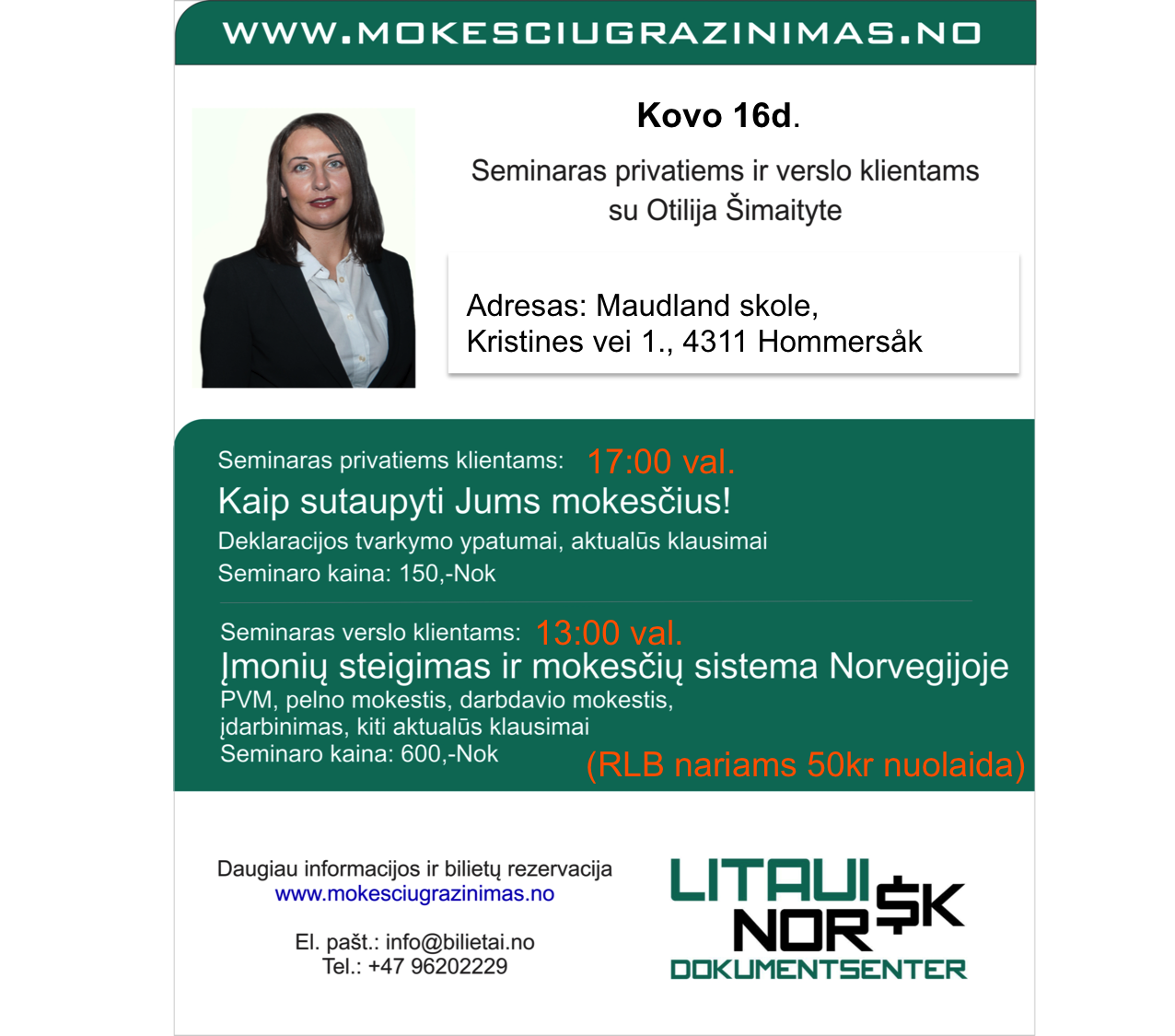 28 vasario, 2013 | Rogalando Lietuvių Bendrija Kovo 16d. seminaras apie mokesčių sistemą Norvegijoje Dalintis: Click to share on X (Opens in new window) X Click to share on Facebook (Opens in new window) Dalintis Facebook Click to email a link to a friend (Opens in new window) Email Kaip Įkeliama... Susiję straipsniai