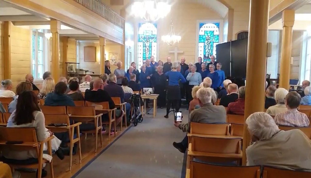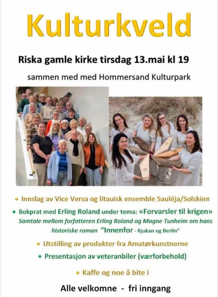Gegužės 13d. mūsų ansamblis “Saulėja” buvo pakviestas dalyvauti kultūros vakare Hommersåko senojoje bažnyčioje ![]()