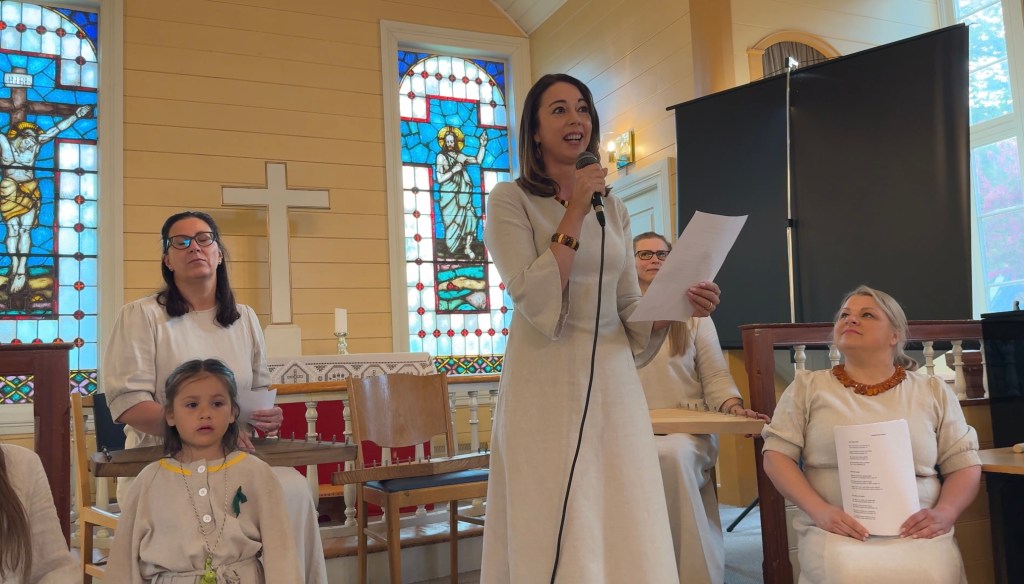 Skambant šiems lietuvių liaudies dainos žodžiams vieną balandžio penktadienį, mažytėje bažnytėlėje ant jūros kranto mūsų ansamblis „Saulėja“ turėjo garbę prisidėti prie ypatingos šventės – lietuvės ir norvego vestuvių. ![]()