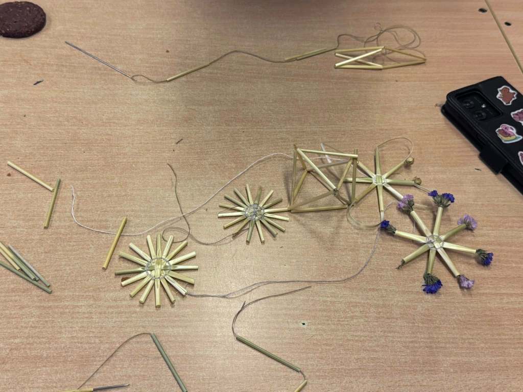 Gaminant tradicinius lietuviškus eglutės papuošimus iš šiaudų pajutome artėjančių švenčių dvasią.