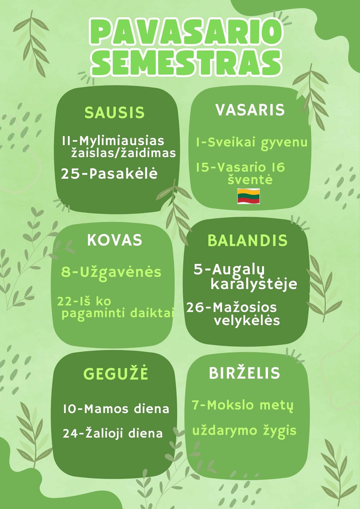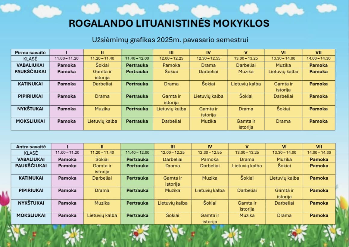 2024/2025 pavasario semestro užsiėmimų grafikas