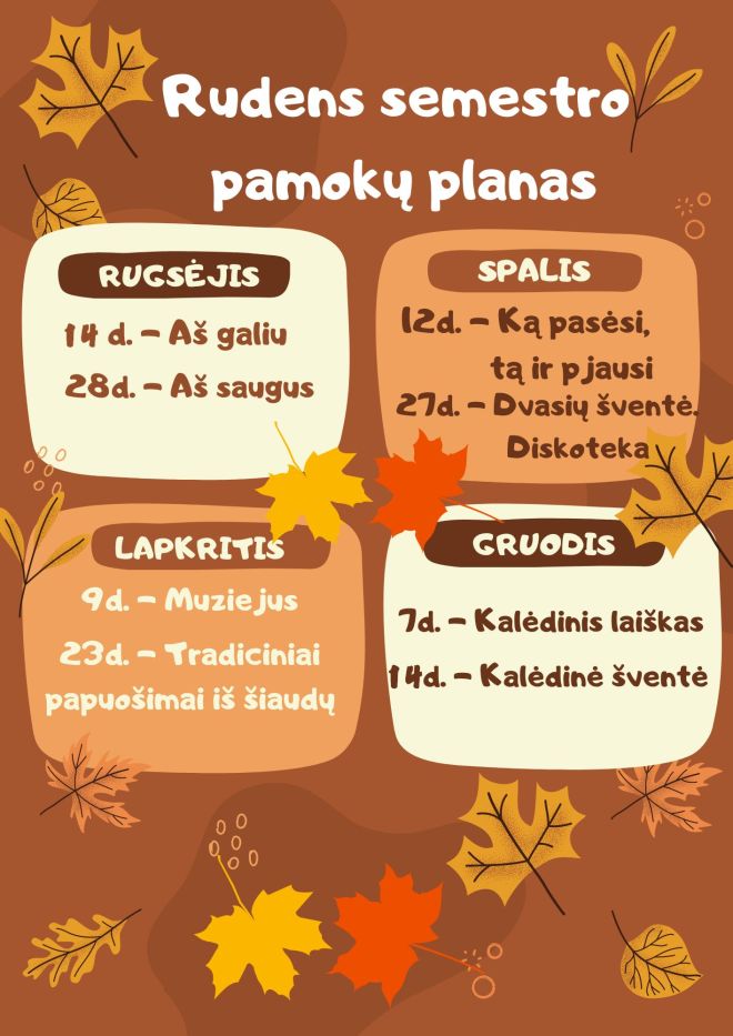 2024/2025 mokslo metų Rudens semestro užsiėmimų planas